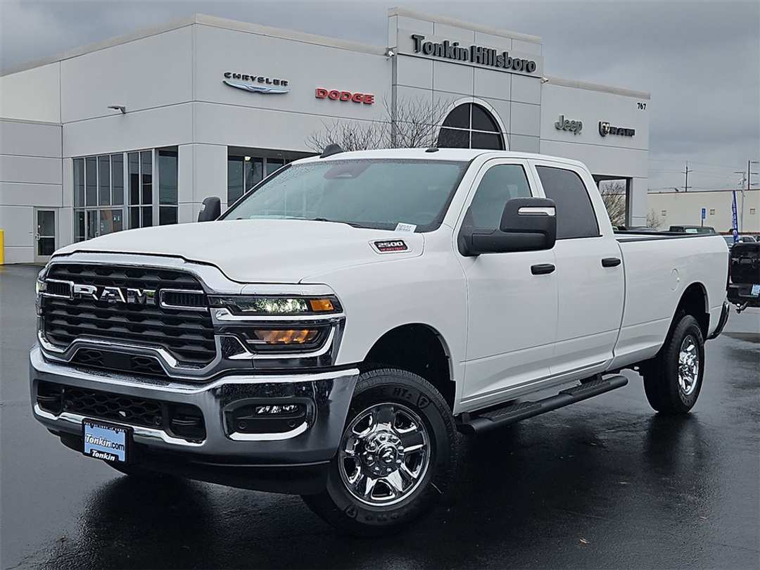 2026 Ram 2500 Tradesman Bright White Clearcoat 6.4L V8 4WD 8-Speed Automatic115-Volt Auxiliary Front Power Outlet, 12" Touchscreen Display, 2 Way Rear Headrest Seat, 3.73 Axle Ratio, 4 Way Front Headrests, 4-Wheel Disc Brakes, 40/20/40 Split Bench Seat, 400W Inverter, 4G LTE Wi-Fi Hot Spot, 50 Gallon Fuel Tank, 6 Speakers, ABS brakes, Air Conditioning, Air Conditioning ATC with Dual Zone Control, Alexa Built-in, AM/FM radio: SiriusXM, Anti-Spin Differential Rear Axle, Apple CarPlay, Apple CarPlay/Android Auto, Auto-Dimming Rear-View Mirror, Black Exterior Mirrors, Black Wheel Center Hub, Brake assist, Bright Front Bumper, Bright Rear Bumper, Carpet Floor Covering, Center Hub, Chrome Grille Surround, Cloth 40/20/40 Bench Seat, Compass, Connected Travel and Traffic Services, Connectivity - US/Canada, Dash Pass Thru Wire Circuits, Delay-off headlights, Disassociated Touchscreen Display, Driver door bin, Dual front impact airbags, Dual front side impact airbags, Electronic Stability Control, Emergency Vehicle Alert System (EVAS), Exterior 115V AC Outlet, Exterior Mirrors Courtesy Lamps, Exterior Mirrors with Heating Element, Exterior Mirrors with Supplemental Signals, For Details, Visit DriveUconnect.com, For More Info, Call 800-643-2112, Front and Rear Floor Mats, Front anti-roll bar, Front Armrest with Cupholders, Front Center Armrest w/Storage, Front fog lights, Front License Plate Bracket, Front reading lights, Fully automatic headlights, Global Telematics Box Module, Google Android Auto, GPS Antenna Input, GPS Navigation, HD Radio, Illuminated entry, Instrument Panel Mounted Auxiliary Switches, Integrated Voice Command with Bluetooth, Low tire pressure warning, Manual Adjust 4-Way Driver Seat, Manual Adjust 4-Way Front Passenger Seat, Manual Folding Exterior Mirrors, Manual Telescoping Mirrors, Matte Black Mesh Grille with Chrome, Mirror Running Lights, Mopar Black Tubular Side Steps, MOPAR Front and Rear Rubber Floor Mats, MyFlexCare Service Plan, Occupant sensing airbag, Off-Road Info Pages, Outside temperature display, Overhead airbag, Overhead console, Panic alarm, ParkSense Front/Rear Park Assist System, ParkView Rear Back-Up Camera, Passenger door bin, Passenger vanity mirror, Power Adjust Mirrors, Power Heated Folding Telescope Mirrors, Power steering, Power windows, Power-Adjustable Convex Aux Mirrors, Quick Order Package 2UA Tradesman, Radio data system, Radio: Uconnect 5 Navigation with 12.0" Display, Radio: Uconnect 5 with 8.4" Display, Rear anti-roll bar, Rear Folding Seat, Rear Power Sliding Window, Rear step bumper, Rear window defroster, Remote keyless entry, Remote USB Port - Charge Only, Selectable Tire Fill Alert, SiriusXM Radio Service, SiriusXM with 360L, Speed control, Storage Tray, Tachometer, Tilt steering wheel, Tinted Acoustic Windshield Glass, Traction control, Tradesman Level 2 Equipment Group, Trailer Tow Pages, Variably intermittent wipers, Voltmeter, Wheels: 17" x 7.5" Black Steel Styled, Wheels: 18" x 8.0" Steel Chrome Clad. Price includes: $1000 - 2026 National Bonus Cash . Exp. 03/31/2026